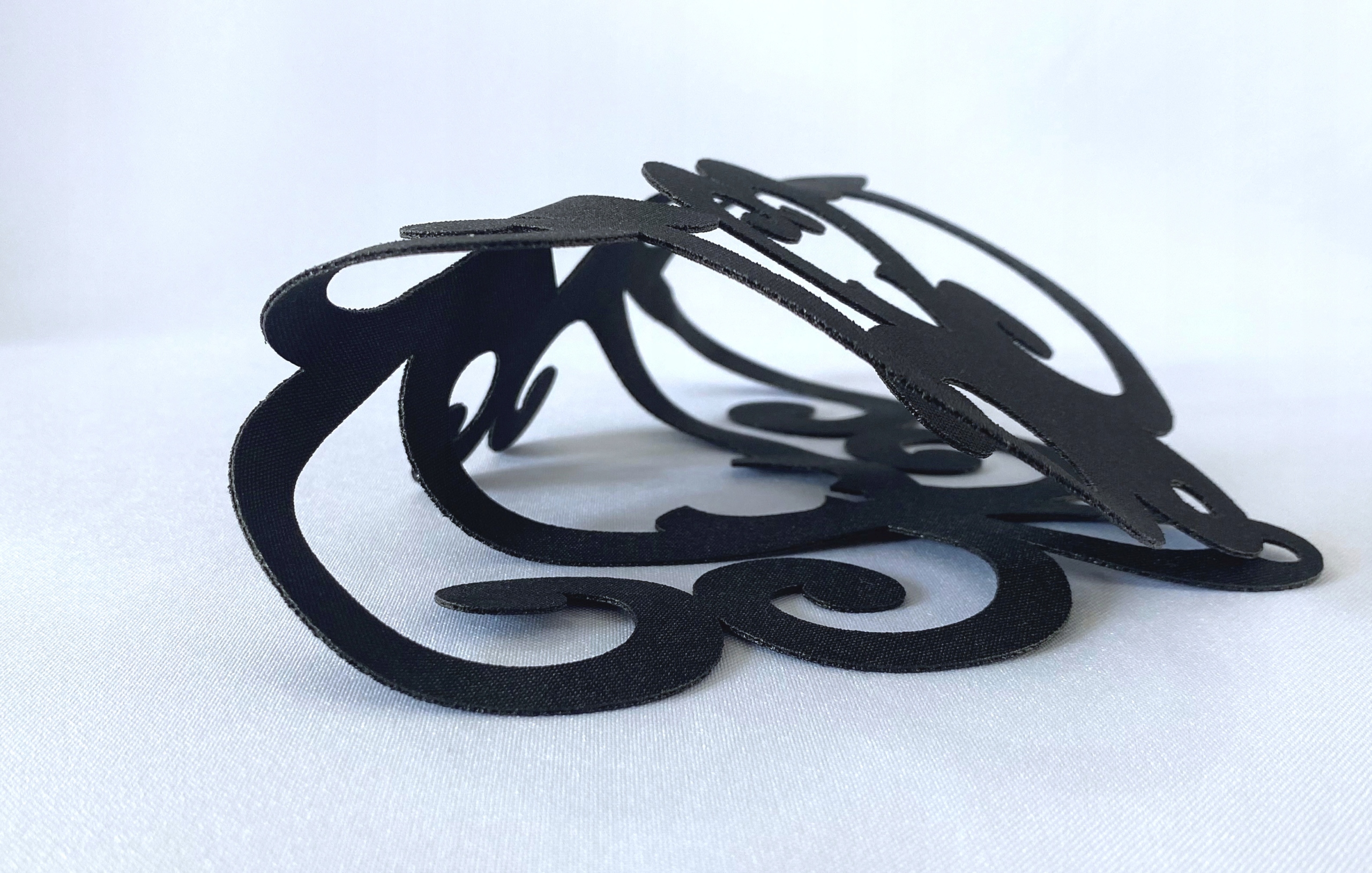 Nasza ażury wycinane są z przygotowanego 3-warstwowego materiału składającego się z dwóch warstw tkaniny oraz sztywnika.