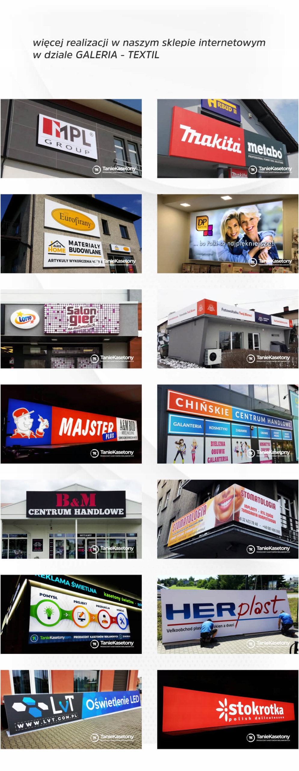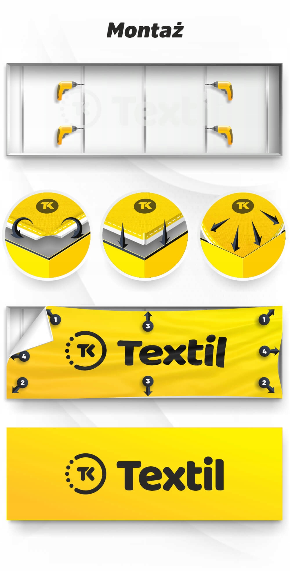 PRZÓD KASETONU: materiał tekstylny z drukiem UV 2xCMYK i obszyciem silikonowym