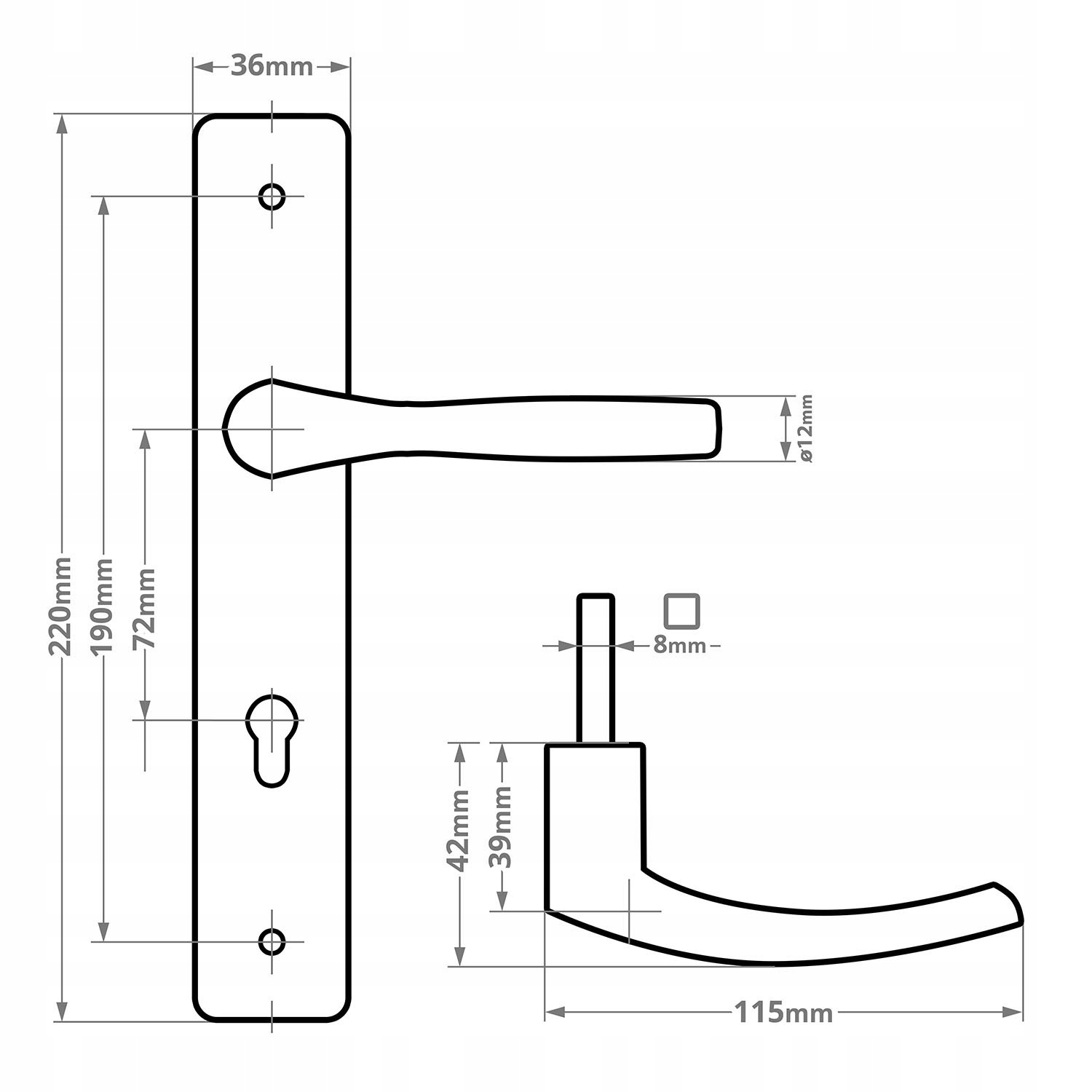 ⭐ Klamka drzwiowa wykonana z aluminium, natomiast szyld z wysoko gatunkowej stali jaka dodatkowo została ocynkowana galwanicznie. Całość pomalowana lakierem proszkowym utwardzanym piecowo.