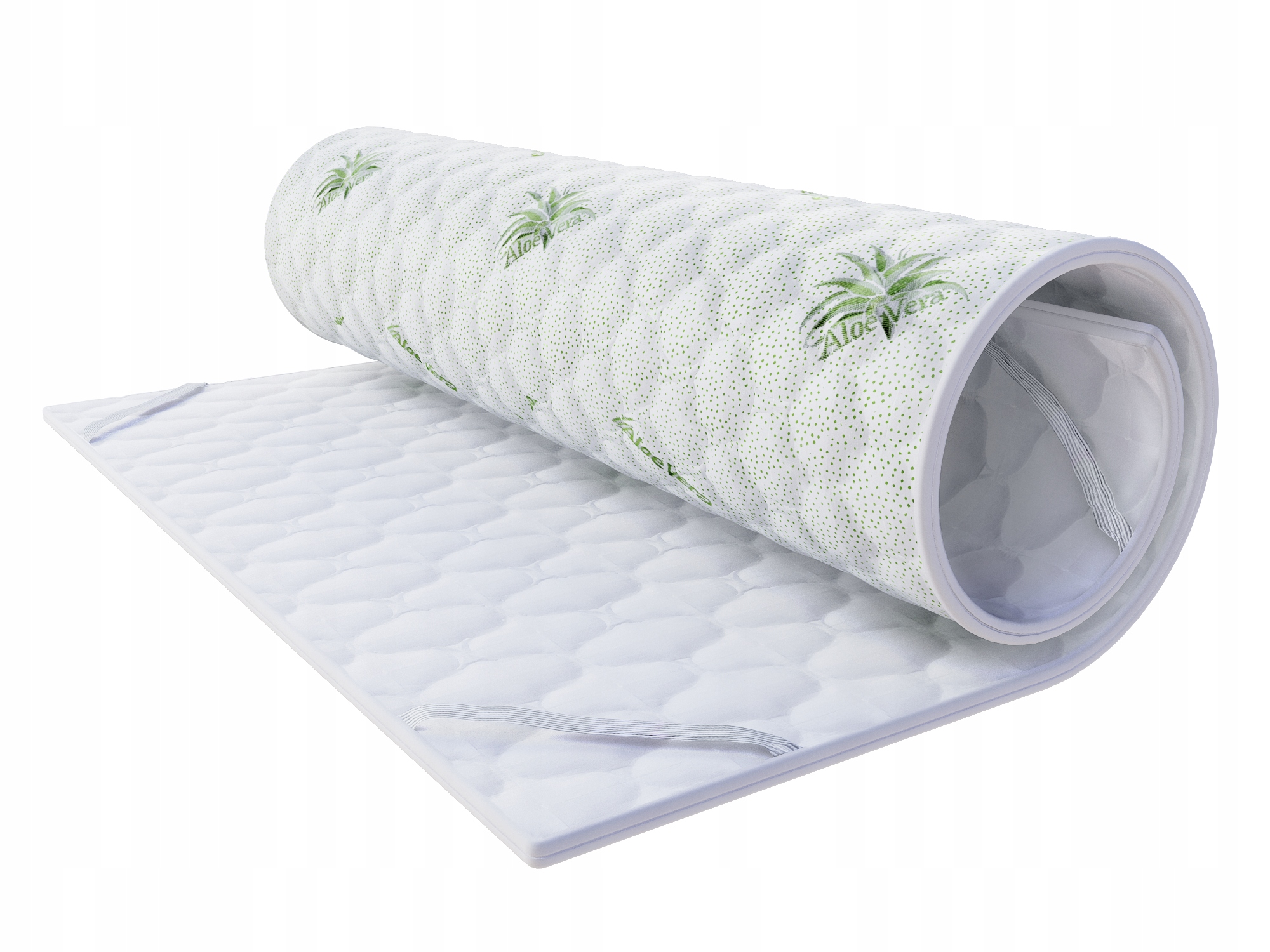 Крышка с экстрактом алоэ (Алоэ вера) - это растение, известное благодаря своим смягчающим, увлажняющим и антибактериальным свойствам, а также естественным гипоаллергенная. Наличие экстракта этого растения в матрасе обеспечит здоровый сон и это принесет утешение. Другая сторона была отделана простой белой тканью.