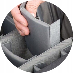 в рюкзаке есть мягкие отделения, благодаря которым вы можете отделить каждый из элементов, чтобы не повредил. Перегородки можно свободно устанавливать, так как в них есть вшитые липучки. Таким образом, легко вы подберете рюкзак под свои нужды.