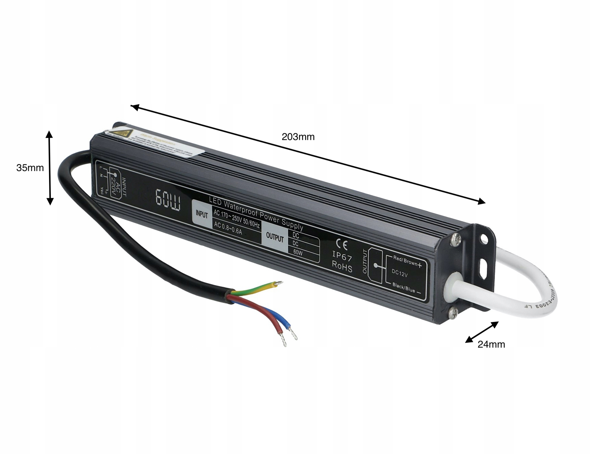 Zasilacz wodoodporny, hermetyczny, zewnętrzny o napięciu wyjściowym 24V DC, w wersji SLIM. Produkt przeznaczony do taśm LED, modułów, paneli, żarówek LED oraz innych urządzeń o napięciu stałym 24V DC. Zaletą zasilacza jest bardzo dobry stosunek jakości do ceny, uniwersalność użycia oraz małe gabaryty.