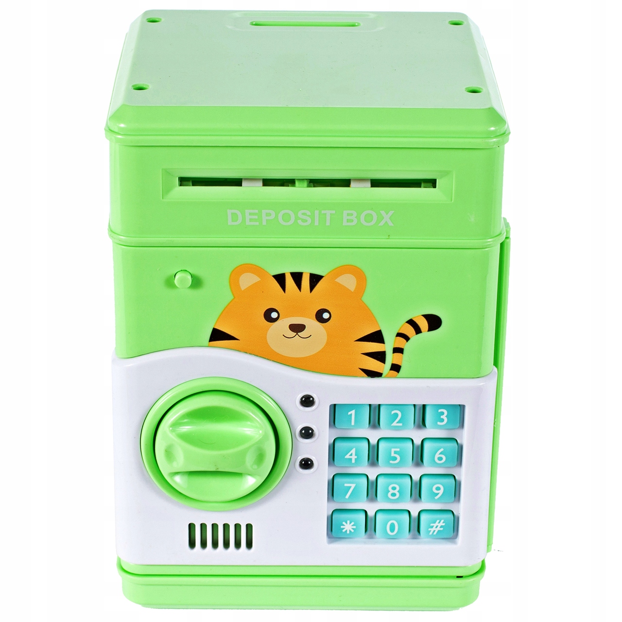 Копилка в форме сейфа - это часы веселья и обучения экономии. В сейфе можно внесите деньги и вынимайте после ввода соответствующего кода. В момент приземления купюру на входе, сейф загрузит ее автоматически и начнет играть одну из 7 мелодий.