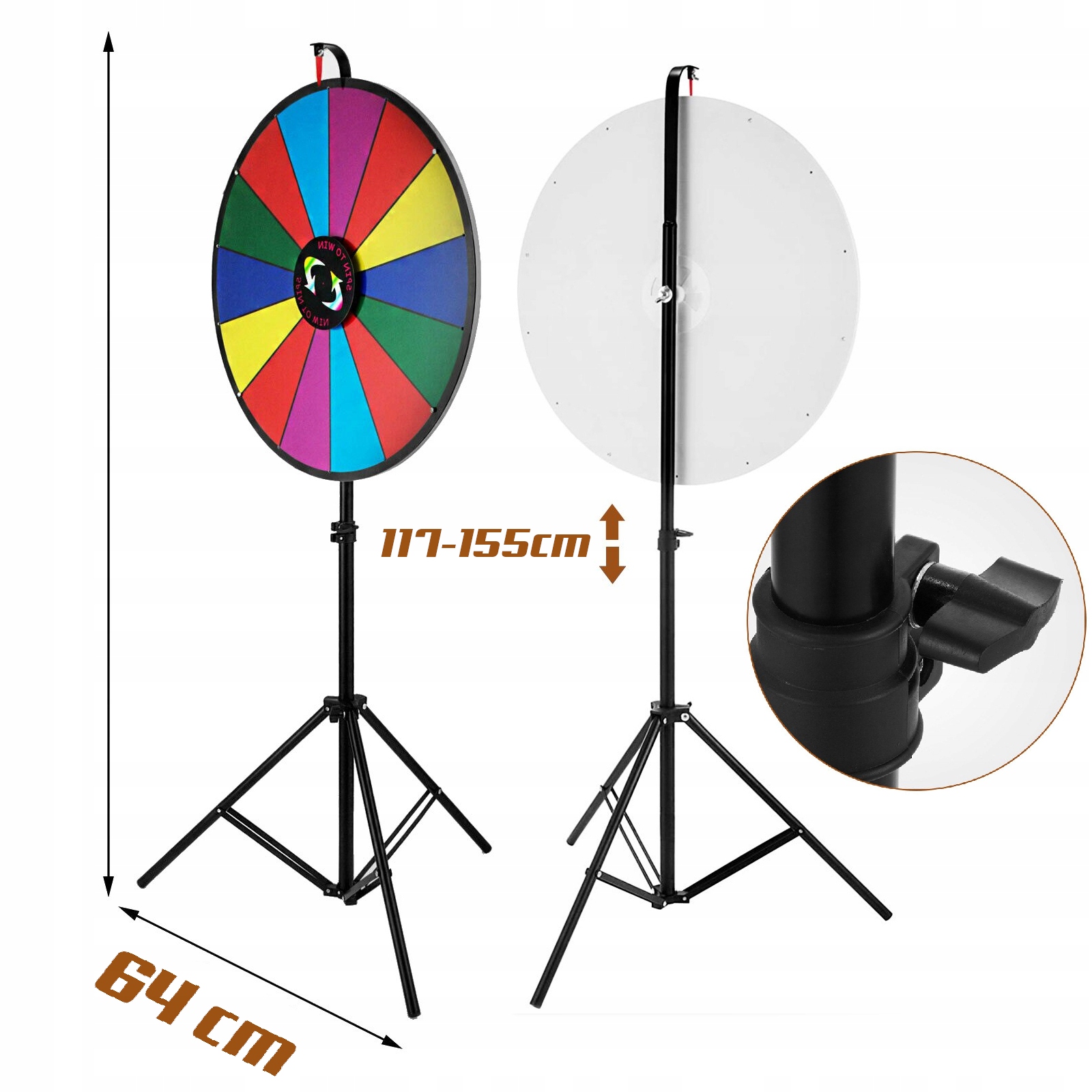 To regulowane koło fortuny jest wyposażone w elastyczny statyw do regulacji wysokości, aby spełnić Twoje potrzeby i dodać zabawy i emocji na każdą okazję. Idealny na karnawał, coroczne spotkanie, imprezę, domowe kasyno, do biuro, do klasy, loterii, zbiórki pieniędzy, na aktywność wakacyjną, imprezę plenerową i wiele więcej!
