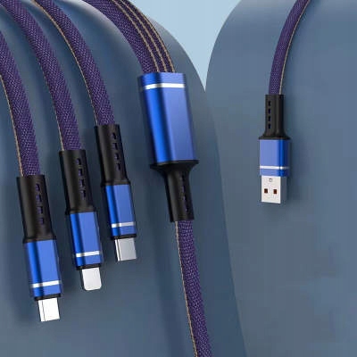 это универсальный кабель, оснащенный разъемом USB и тремя концы. Такое решение позволяет одновременно заряжать устройства, оснащенные портами Micro-USB, USB-C oraz Lightning. Концевые заглушки спроектированы таким образом, чтобы они выдержали длительное и интенсивное использование.