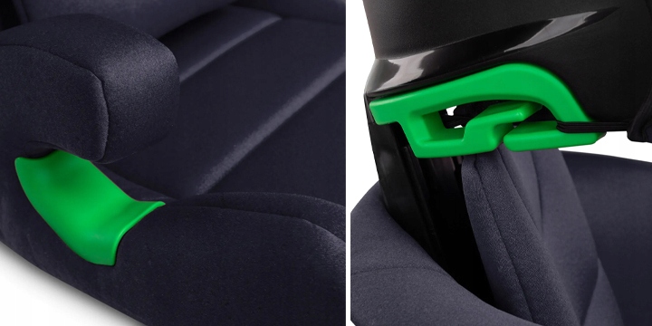 Благодаря зеленым направляющим, установка автокресла в автомобиле это намного проще - указатели информируют родителя о том, каким образом должна проходить полоса плечевой и тазобедренный. Дополнительной точкой крепления являются разъемы Isofix.