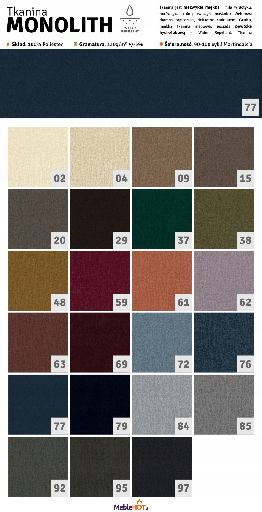 Poniżej zdjęcia poglądowe dostępnych tkanin (nazwę wybranej tkaniny prosimy podać w informacjach dla sprzedającego).