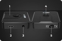W trybie nadajnika wystarczy, że podłączysz Webski CUBE do urządzenia, z którego chcesz nadawać dźwięk (audio out), a następnie na urządzeniu odbiorczym np. słuchawkach włączysz tryb parowania. Transmiter automatycznie je wykryje i się z nim połączy - bez potrzeby żadnego interfejsu!