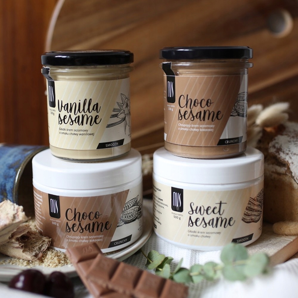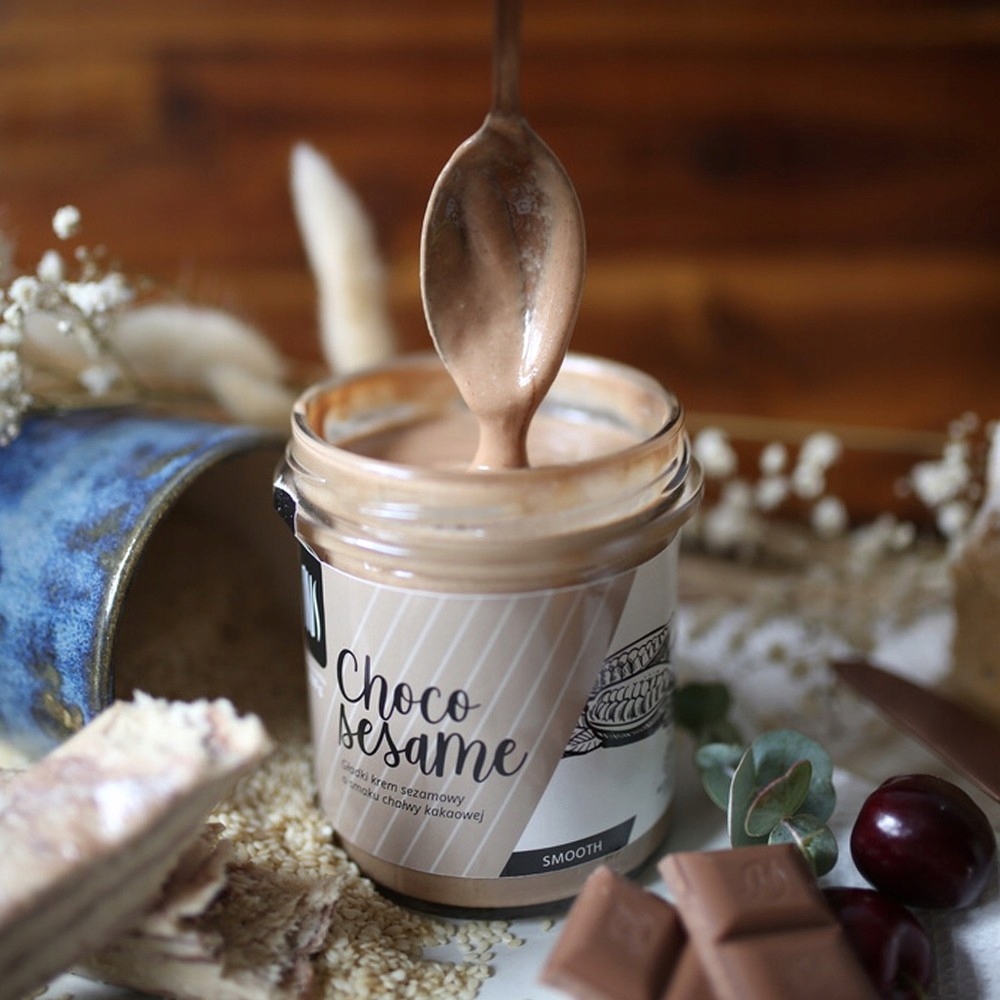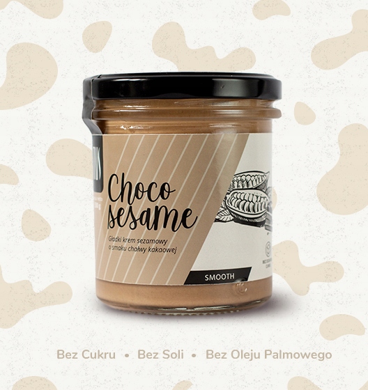 Sweet Sesame to idealna propozycja dla fanów chałwy kakaowej. Krem ma przyjemną, gładką konsystencję oraz jest pozbawiony wszelkich konserwantów i ulepszaczy. Powstaje na bazie wyprodukowanego przez nas tahini. Słodzony zdrowszym substytutem cukru - maltitolem, to idealna propozycja na cudowny początek dnia.