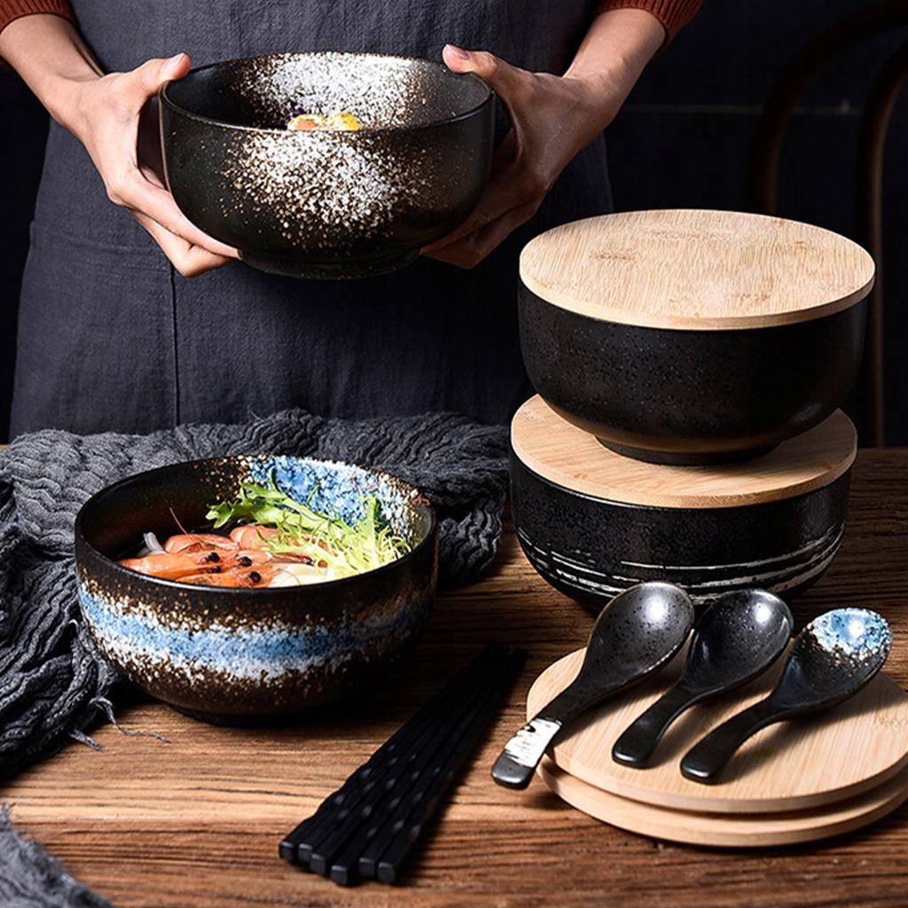 „Ceramiczna japońska miska ramenowa duża miska porcelanowa 1500 ml z pokrywką i łyżką