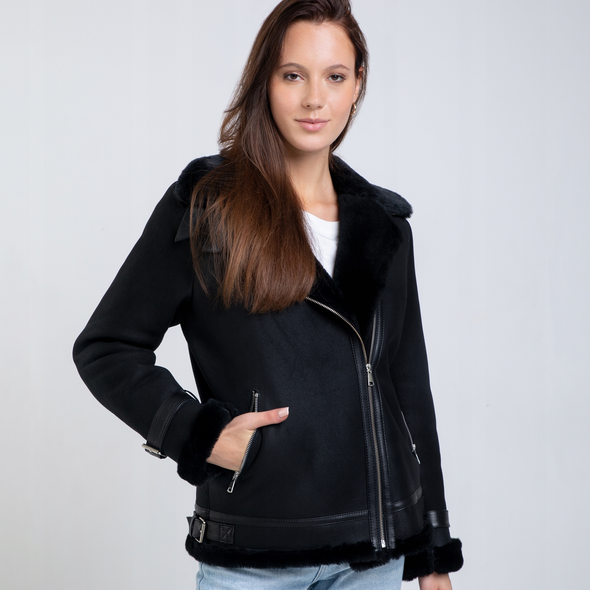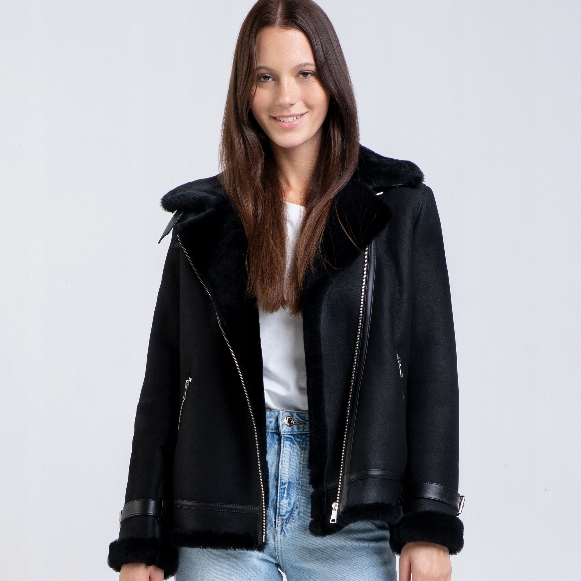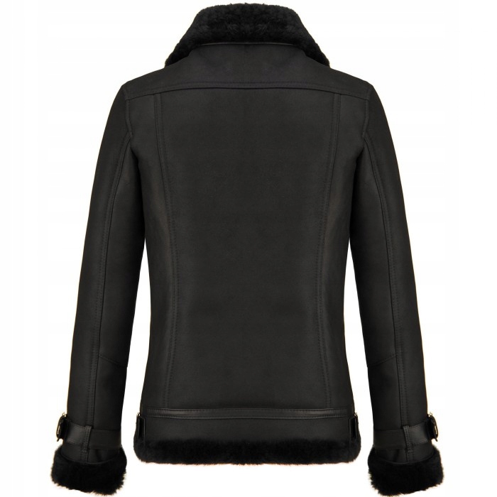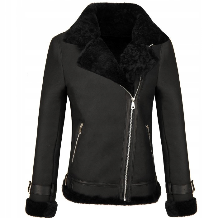 Skórzany kożuch w fasonie klasycznej, damskiej ramoneski. Bardzo ciepły, wykonany z wysokiej jakości skóry jagnięcej kożuchowej w czarnym matowym kolorze. Posiada dwie kieszenie zapinane na zamek. Całość ocieplana bardzo przyjemnym, miękkim włosiem. Kożuch zapinany na asymetryczny zamek. Wysoki, wykładany kołnierz w formie stójki z możliwością zapięcia pod szyją bądź wyłożenia na zewnątrz stanowi doskonałą ochronę przed mrozem i jest jednocześnie ozdobą kożucha.