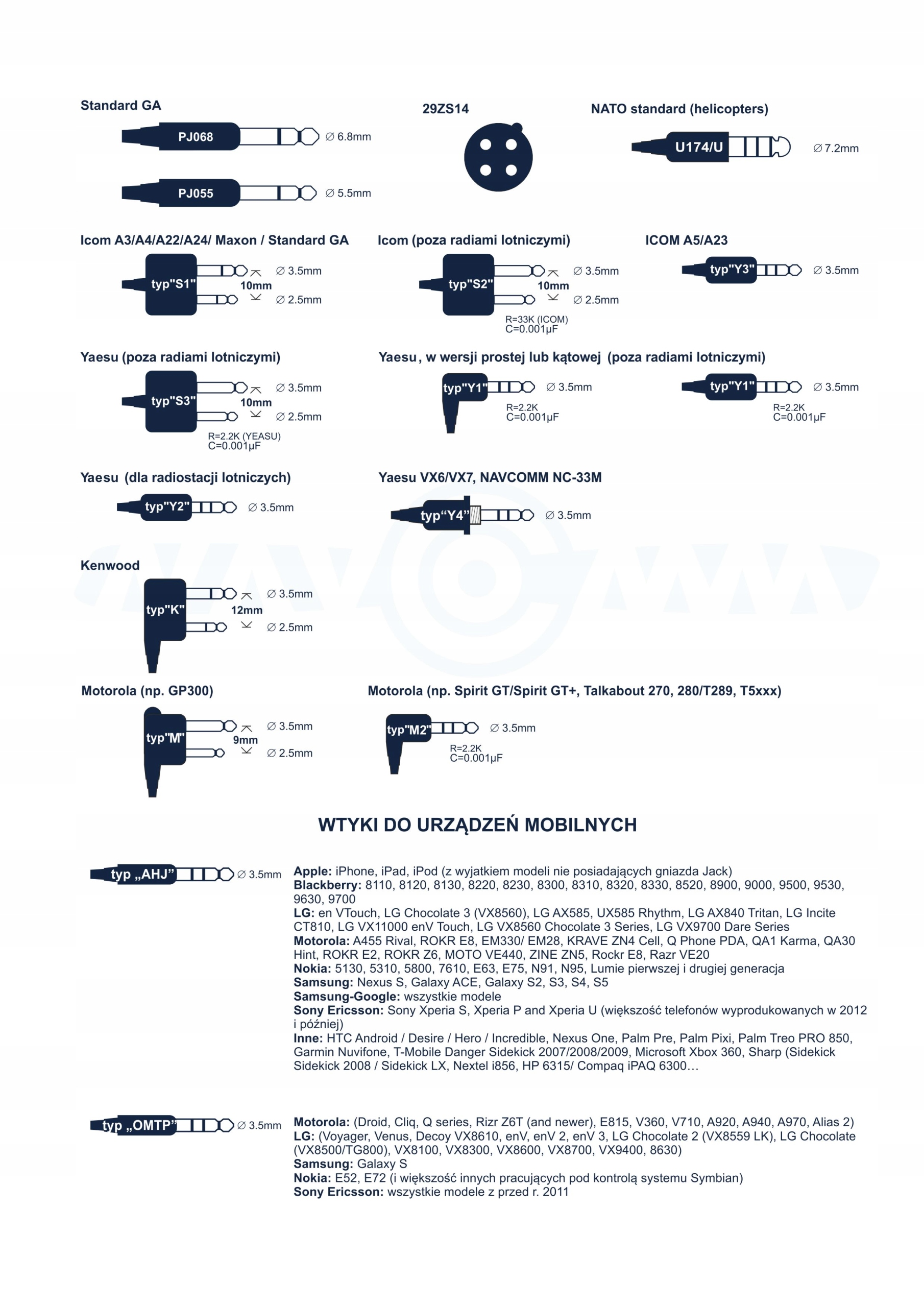 Po zakupie prosimy o podanie typu złącza lub modelu radiostacji z jaką będą pracowały słuchawki.