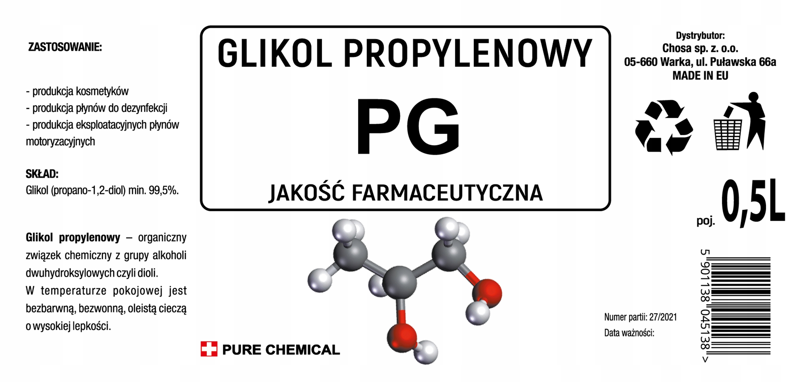 Jako jedyni oferujemy glikol w butelkach do zastosowań farmaceutycznych z wszystkimi niezbędnymi atestami. Nie ryzykuj. Kupuj u sprawdzonego i doświadczonego sprzedawcy.