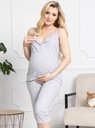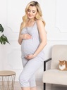 Szara piżama ciążowa składa się z koszulki na ramiączkach oraz rybaczek. Koszulka jest niezwykle wygodna ze względu na umieszczenie zapięcia na środku, co pozwala szybko i bez wysiłku nakarmić maleństwo. Spodenki posiadają elastyczną gumkę, która nie uciska brzuszka. Piżama idealnie sprawdzi się w ciepłe, letnie dni oraz jako element garderoby podczas pobytu w szpitalu. Piżama do karmienia w kolorze szarym jest niezwykle elegancka i przewiewna, a jej dodatkowy plus stanowi wytrzymałość, którą zawdzięcza naturalnej bawełnie oraz polskiej produkcji. Kupując ją, każda mama może mieć pewność, że doskonale sprawdzi się zarówno trakcie długich miesięcy ciąży, jak i w czasie karmienia maluszka.