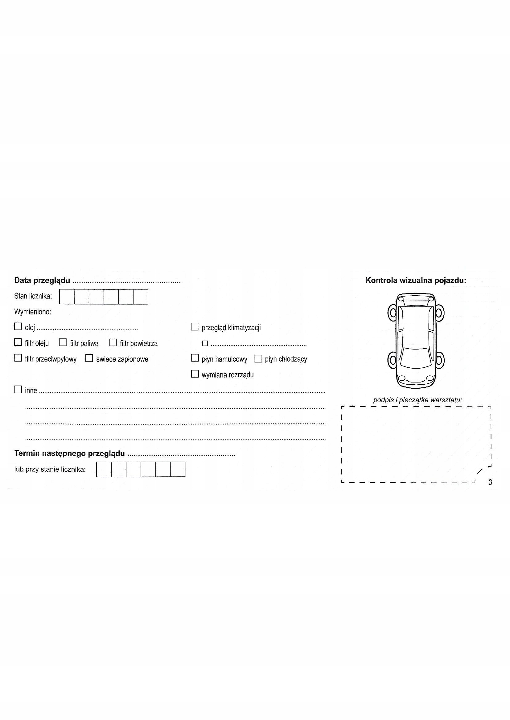 Następne strony od 3-26 przeznaczone są każdorazowego przeglądu samochodu oraz historii napraw