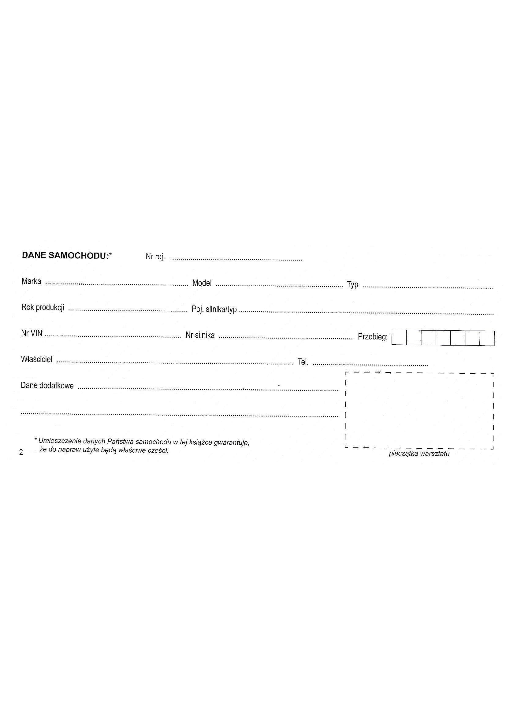 Na 2 stronie wpisujemy dane samochodu, itp...