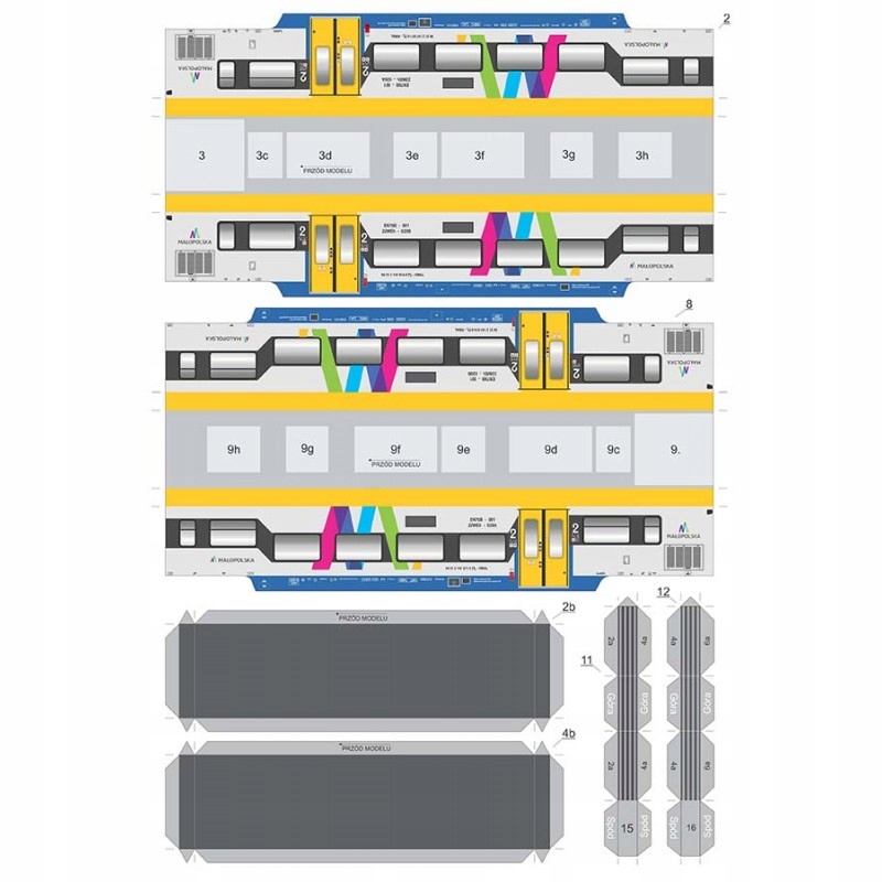 Образец включает в себя картонную модель для склеивания, демонстрирующую электрический Тяговый агрегат ETZ (ELF-2) в покраске подвижного состава, используемого Малопольским воеводством.