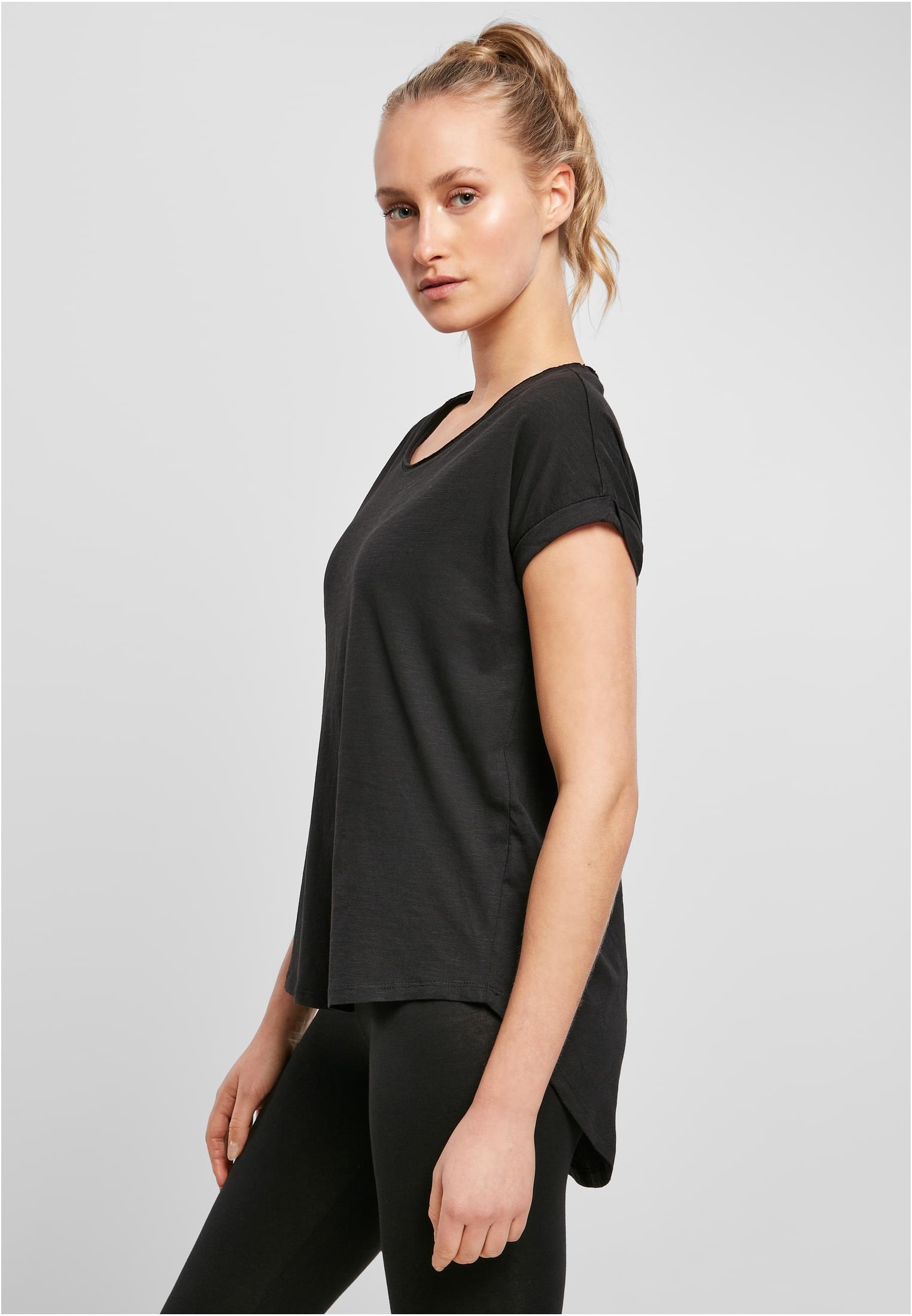T-Shirt premium marki BYB, model BY036, fason damski luźny z przedłużonym tyłem.