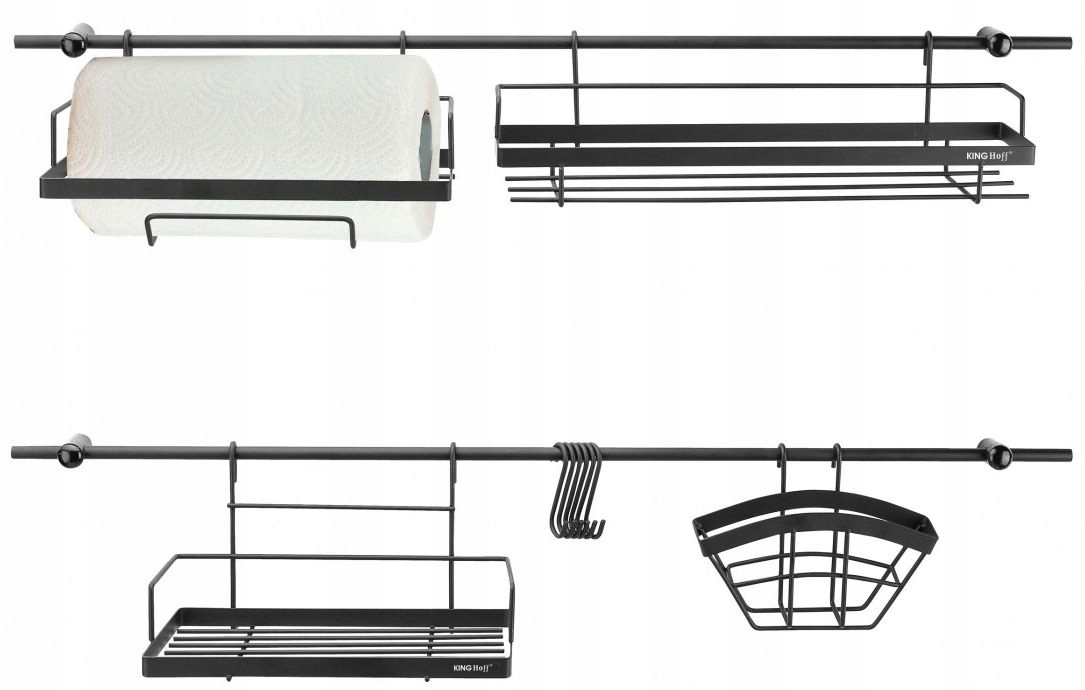 Zestaw został wykonany ze stali malowanej proszkowo na kolor czarny mat.