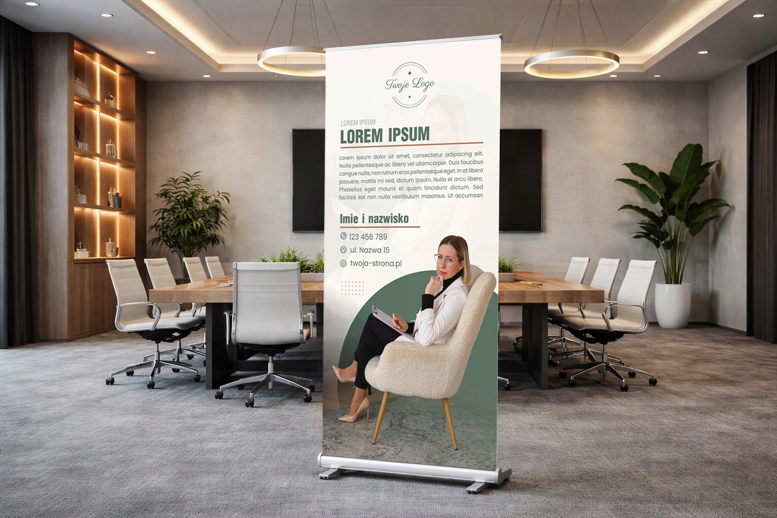 🟦 Dlatego też jeżeli Twoja firma bierze udział w różnego rodzaju prezentacjach, targach czy szkoleniach – roll-upy to coś dla Ciebie!