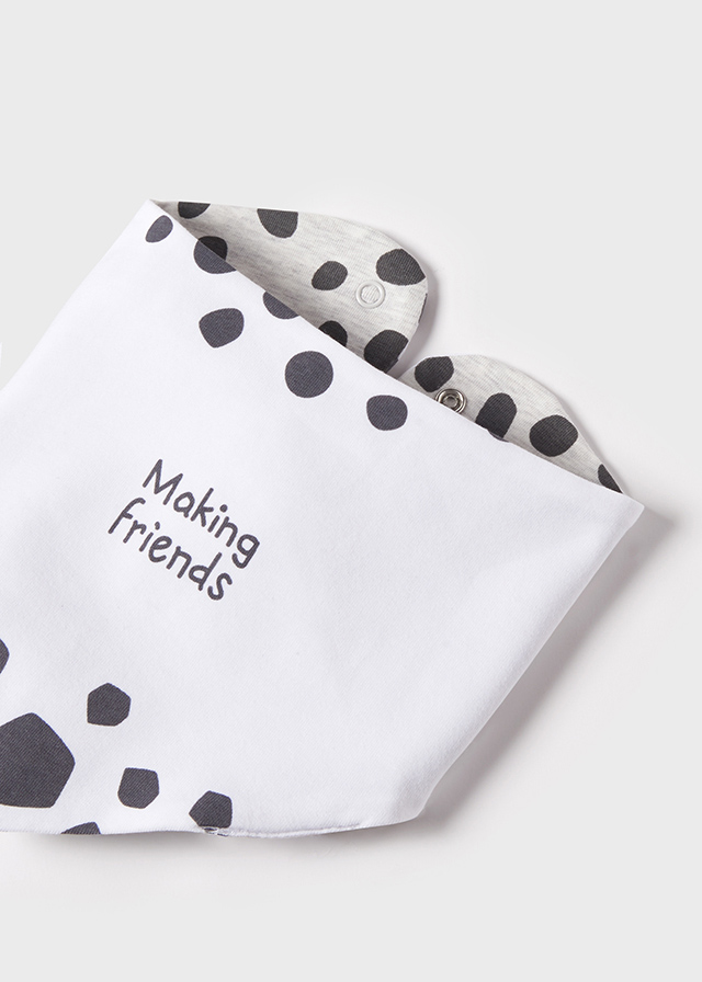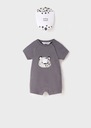 Rampersy z okrągłym dekoltem. Zapięcie na zatrzaski ułatwiają zakładanie. Wygodna dzianina. Ozdoby: ozdobne grafiki.