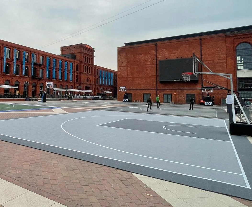 Płytki polipropylenowe Double Layer firmy Enlio to modułowa nawierzchnia sportowa przeznaczona do boisk koszykarskich, wielofunkcyjnych oraz kortów tenisowych. Wymiary modułu to 30,1 x 30,1 x 1,58 cm. Ze względu na łatwy i szybki montaż stosowane są jako mobilne boiska na imprezach plenerowych czy w szkołach podczas zawodów sportowych. Za ich pomocą możesz stworzyć także przydomowe boisko rekreacyjne w swoim ogrodzie.