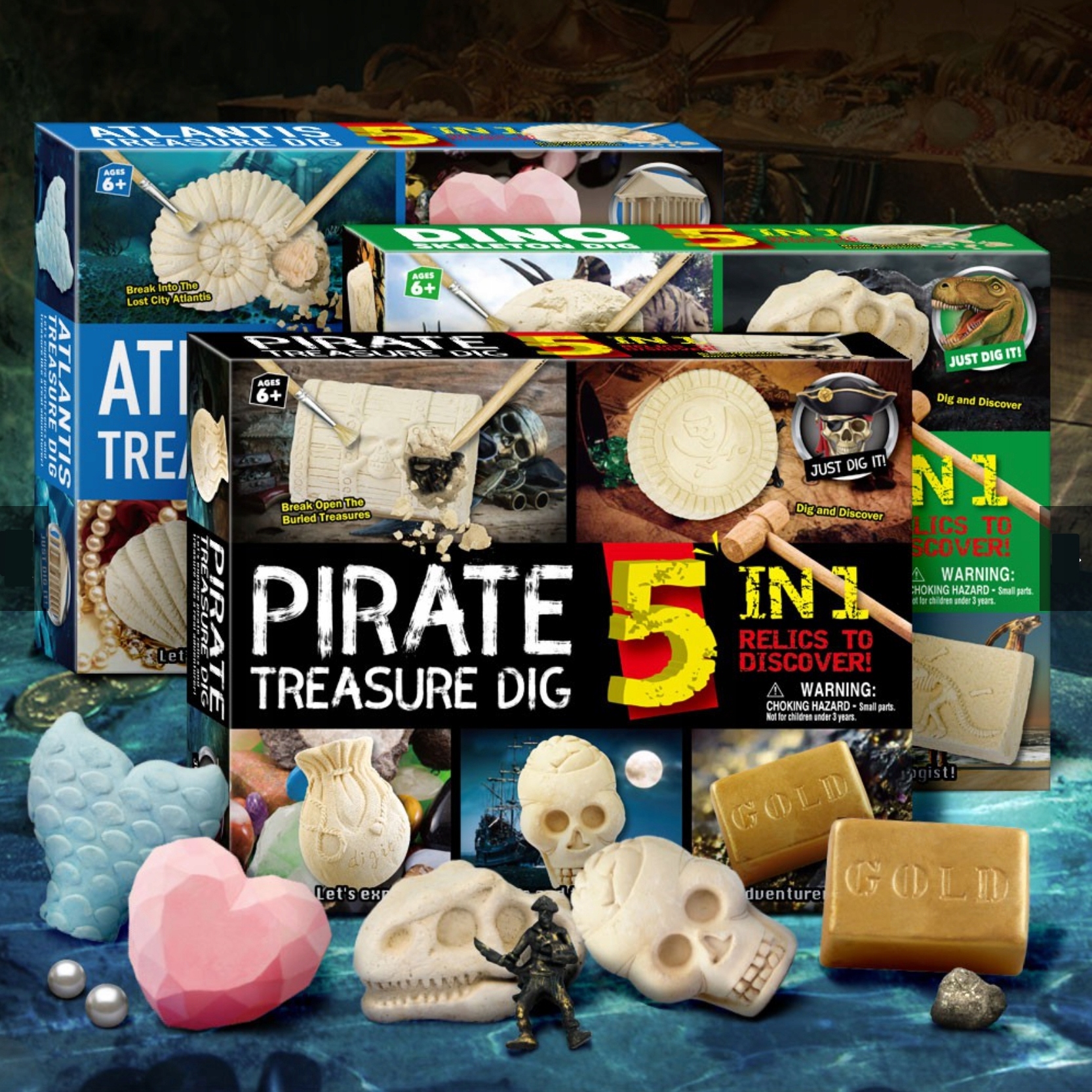 Poszukuj Skarbów Piratów, jak prawdziwy odkrywca. W naszym zestawie 5w1 znajdziesz 5 skarbów!