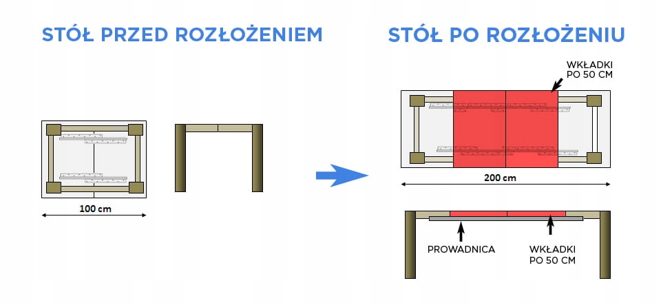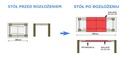 Применение этой направляющей к столу позволяет раздвиньте стол и добавьте две вставки максимальной ширины 50 см на вставку. Обозначение направляющей 65/105 означает последовательно: