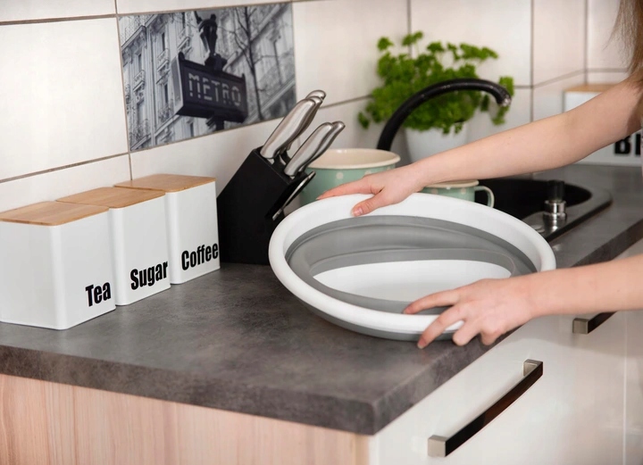 Из-за емкости складывающаяся чаша достигает небольшого размера, рука.