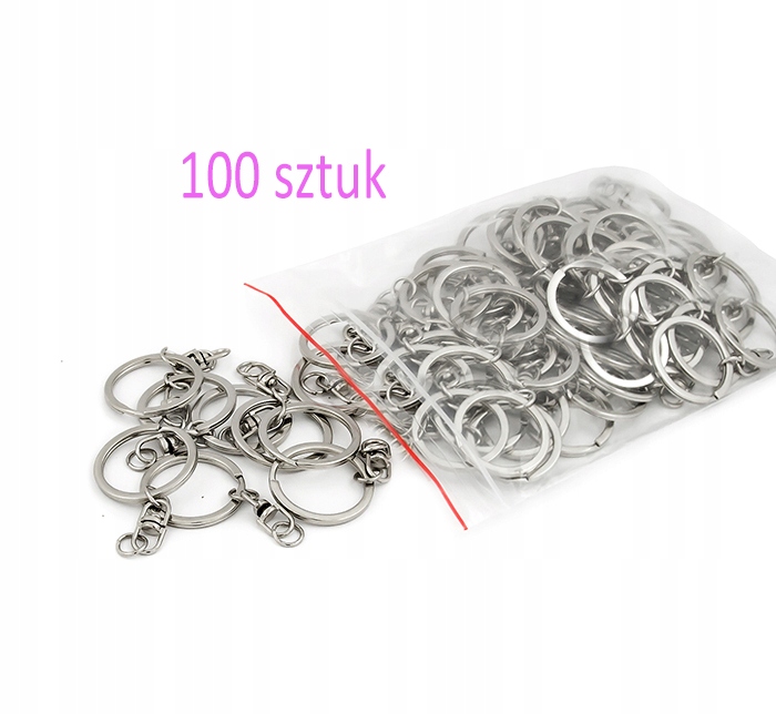 ZESTAW 100 SZTUK KÓŁEK DO KLUCZY- BRELOKA
