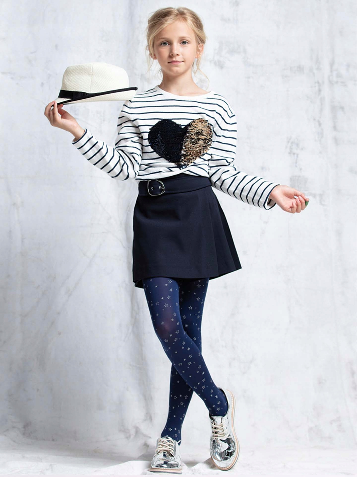Cienkie rajstopki w kolorze granatowym w gwiazdy - są wykonane z cieńszej mikrofibry, doskonale sprawdzą się latem i wiosną.