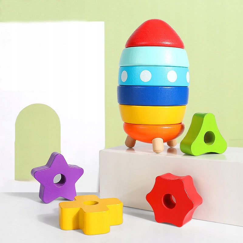 Kolorowa nakładanka sorter rakieta, to doskonała zabawka dla małych miłośników kosmosu i pojazdów kosmicznych.