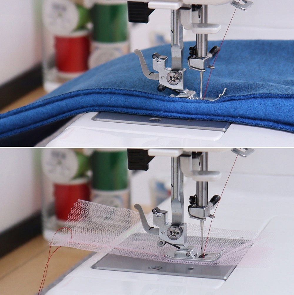 Dzięki tej funkcji szycie jest nie tylko łatwiejsze (maszyna bez problemów przesuwa materiały w czasie szycia), ale także daje estetyczniejsze rezultaty (ścieg wygląda ładnie, a na materiale nie ma śladu po ząbkach transportera).