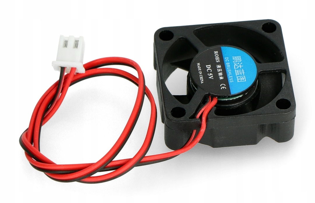 Wentylator montażowy 5 V o wymiarach 30 x 30 x 10 mm. Wyposażony w dwa przewody długości 30 cm zakończone złączem JST 2,54 mm. Wentylator znajduje zastosowanie m.in. jako element chłodzący w obudowach do Raspberry Pi.