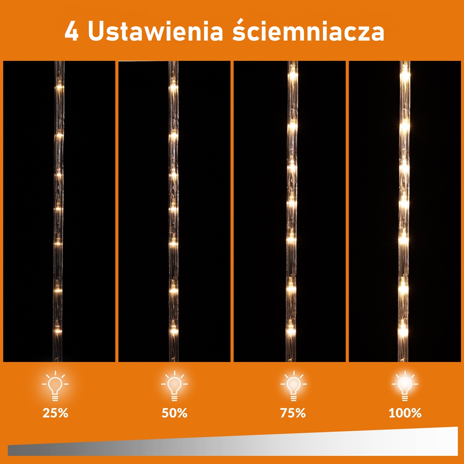 Światło można przyciemnić o 4 poziomy za pomocą pilota. Dzięki przewodowi zasilającemu o długości 5 m nie jest konieczne stosowanie przedłużacza.