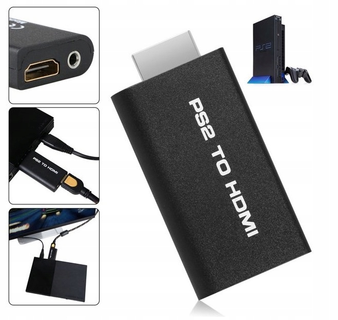 Adapter umożliwia podłączenie konsoli PS2 do wejścia HDMI telewizora wysokiej rozdzielczości.