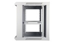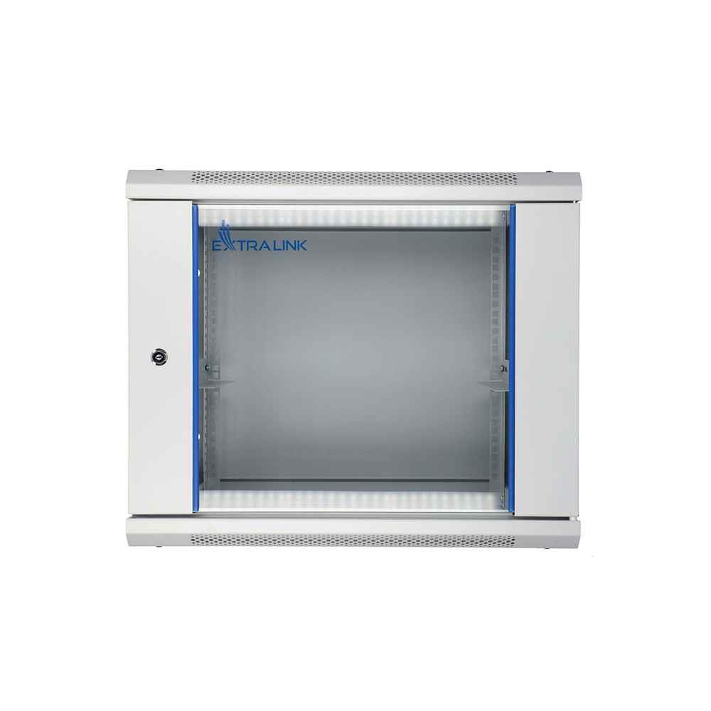 Szafa rackowa firmy Extralink jest przeznaczona do montażu naściennego w biurach, serwerowniach sieciowych oraz pomieszczeniach sterowania instalacjami CCTV. Ściany zewnętrzne wykonane są z walcowanej na zimno blachy stalowej. Wyposażone w szybę ze szkła hartowanego przednie drzwi mogą otwierać się na lewą lub prawą stronę.
