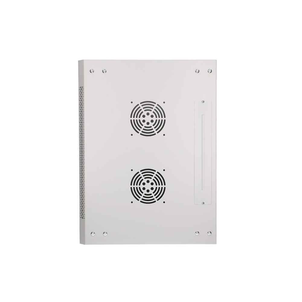 Na suficie szafy przygotowane są 2 miejsca na zainstalowanie wentylatorów w celu lepszego chłodzenia urządzeń, umieszczony jest tam również dodatkowy przepust do wyciągania kabli.
