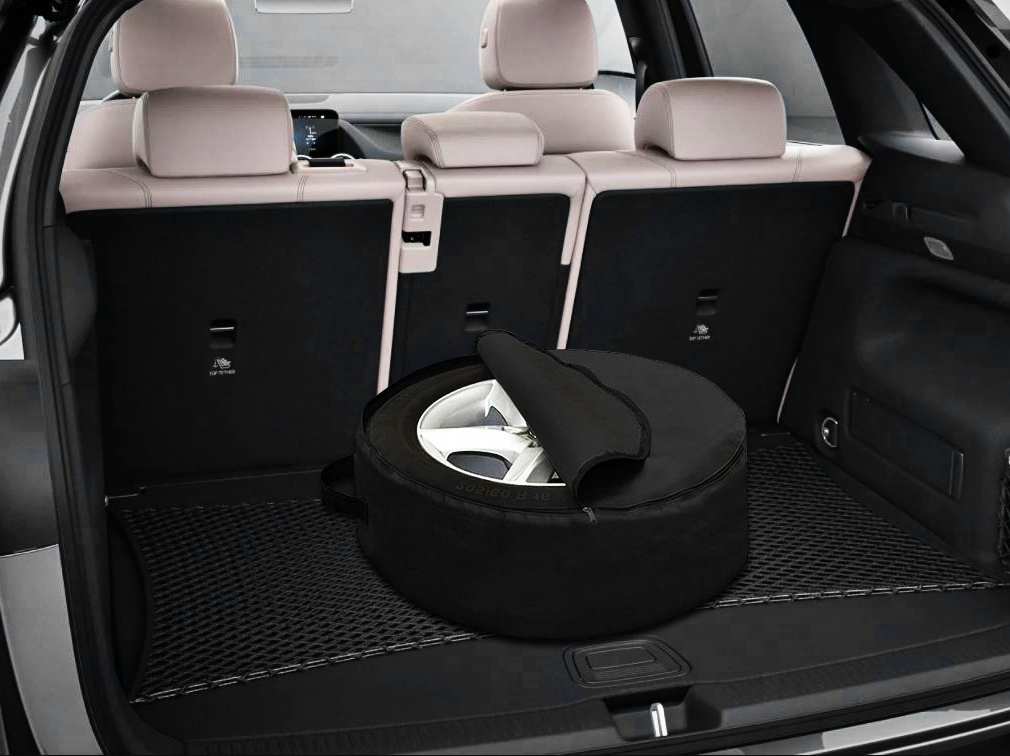 Pokrowiec zabezpiecza koła przed zabrudzeniami, jest bardzo łatwy w czyszczeniu, wodoodporny i wytrzymały. Pokrowiec jest również skutecznym zabezpieczeniem powierzchni bagażnika przed zabrudzeniem podczas przewożenia kół