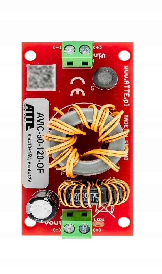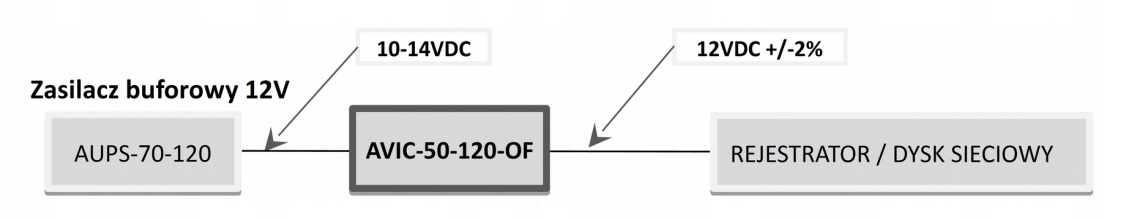 Moduł typu AVIC-50-120-OF jest wysokosprawną izolowaną przetwornicą DC/DC przeznaczoną do zasilania rejestratorów, dysków sieciowych oraz innych urządzeń wymagających stabilnego zasilania 12VDC pracujących z zasilaczem buforowym, którego napięcie wyjściowe zmienia się w zakresie od 10V...14V w zależności od trybu pracy (akumulator/sieć).