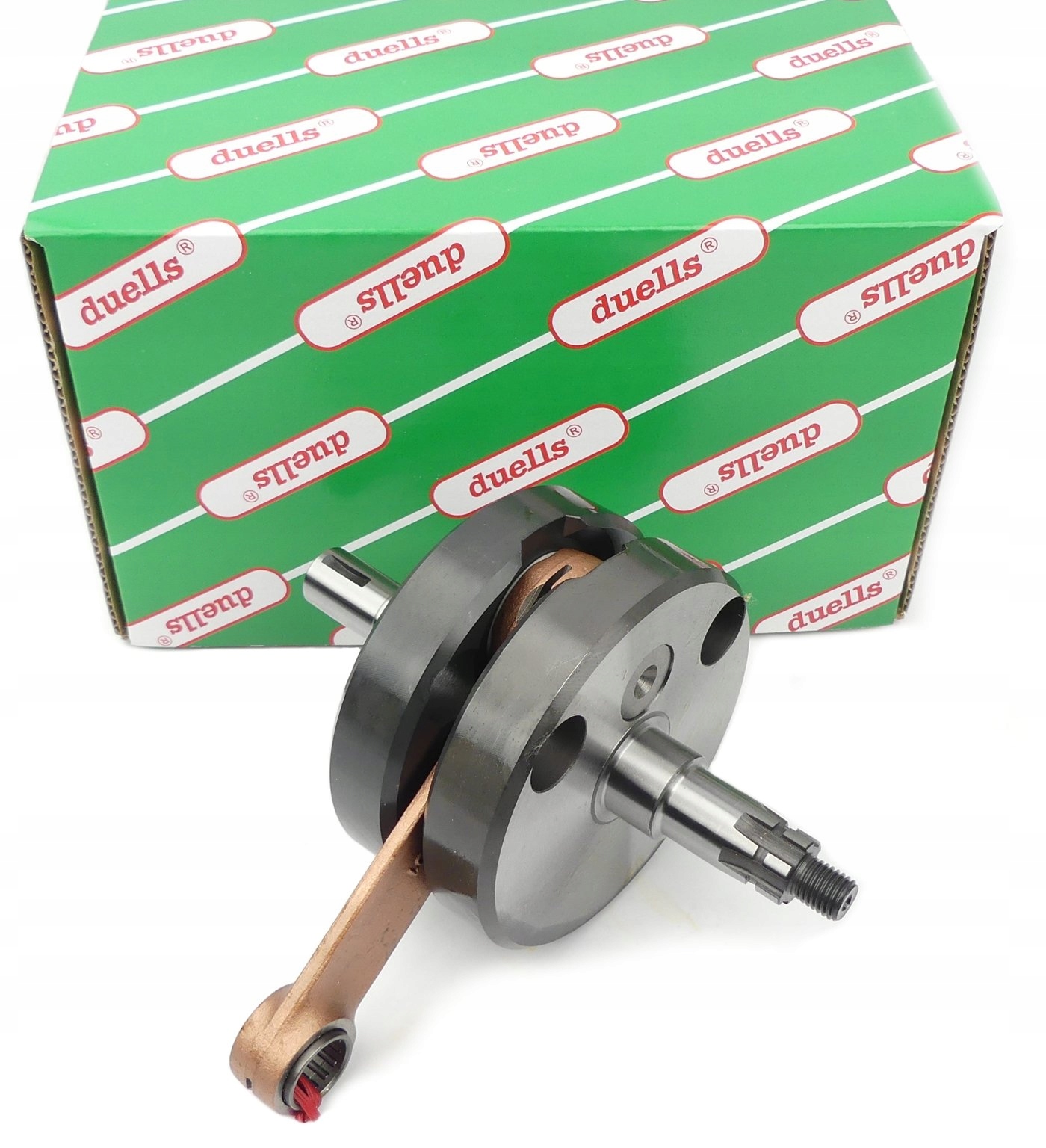 W skład zestawu wchodzi wał korbowy wykonany na wzór oryginału. Jest to obecnie najlepszy wał dostępny na rynku, który jakościowo przewyższa oryginał. W celu lepszego smarowania sworznia tłokowego, tulejkę brązową główki korbowodu zastąpiono łożyskiem igiełkowym. Korbowód, który został zamontowany na wale jest firmy DUELLS - marka rozpoznawana od kilku lat na rynku ze względu na jakość swoich wyrobów. Dzięki zamontowaniu takiego zestawu - będziesz miał pewność, że praca silnika będzie idealna. I tak jest w rzeczywistości a potwierdzają to bezpośrednie informacje od klientów, które do Nas stale napływają.