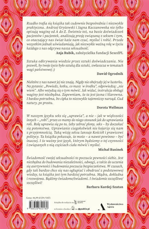 Wagina często traktowana jest przez kobiety użytkowo, myta, depilowana, a nawet operowana, by sprostać męskim wyobrażeniom. Bywa nazywana sromem – jak sromotna klęska. Albo – pochwą. Jak futerał na miecz, czyli dodatek do męskiej seksualności. Ciekawe, że istnieją członkowie zarządu, a nie ma pochew zarządu. Jeśli kobieta nie podchodzi z akceptacją, a nawet dumą do swojej waginy, nie osiągnie pełnej satysfakcji z seksu (a wraz z nią osoba, z którą go uprawia). Ani w życiu osobistym. Ani w pracy. Bo wulwa, piękna, niesamowita, niemająca sobie równych pod względem anatomicznym (penis nie jest bynajmniej tak skomplikowany!), to źródło kobiecej siły.