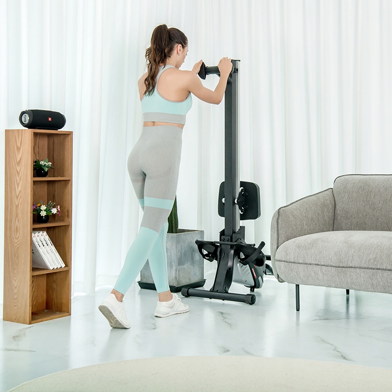 Благодаря использованию жесткой алюминиевой рамы гребца очень легко поставить на стояк что позволяет убрать его куда угодно.