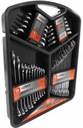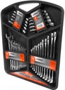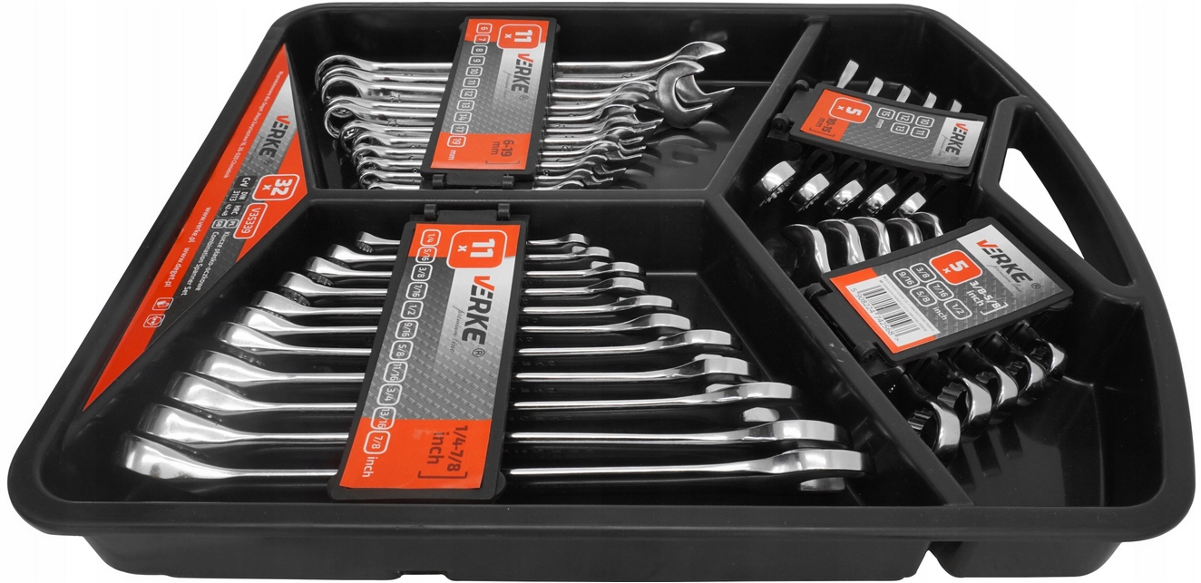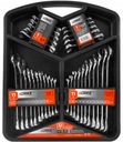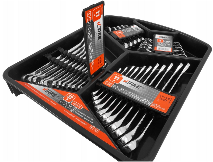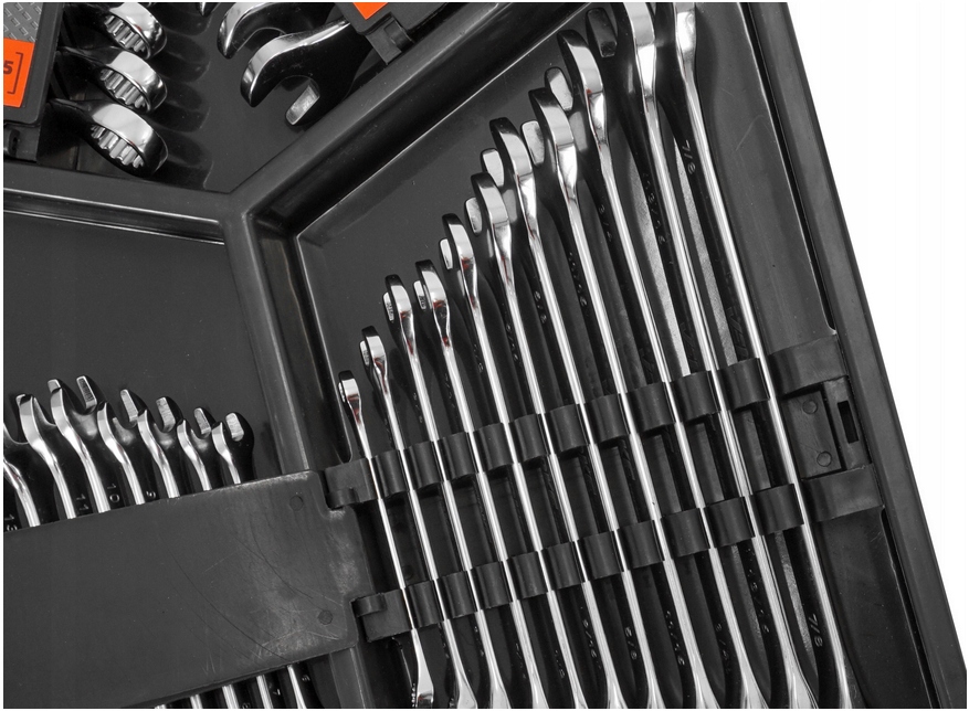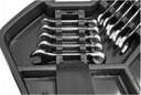 Bardzo wysokiej jakości klucze płasko-oczkowe wykonane ze stali chromo-wanadowej. Przeznaczone do pracy zarówno w warunkach domowych jak i w profesjonalnym warsztacie. Spełniają normy DIN 3113. Klucze mają estetyczne polerowane wykończenie. Całość zapakowana została w wygodne etui (kasetę), dzięki czemu zajmuje mało miejsca. Zawieszka wykonana jest z bardzo mocnego i wytrzymałego materiału, a otwór w jej górnej części umożliwia powieszenie ich na ścianie.