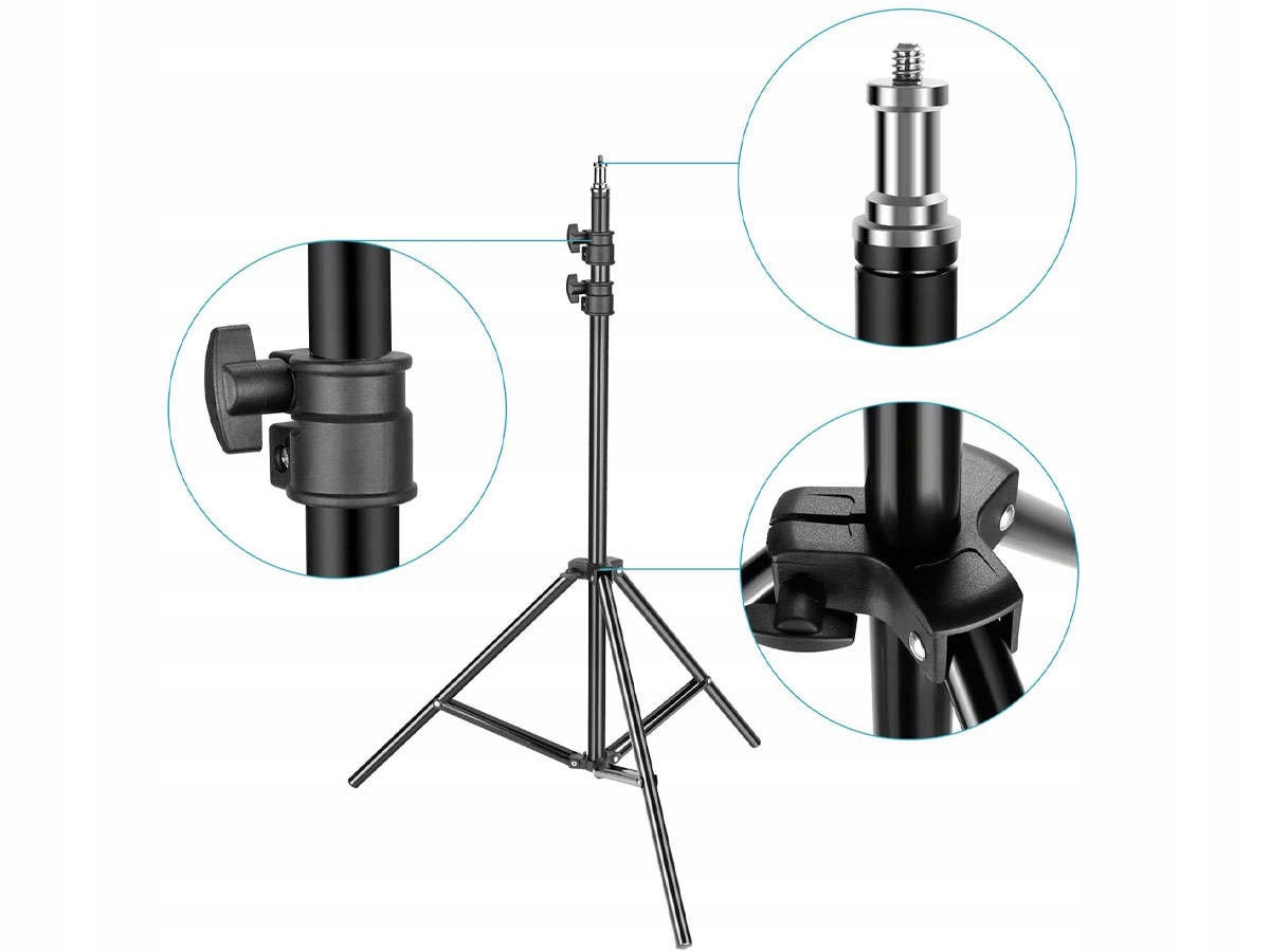 Statyw pozwala na zamontowanie lampy lub urządzenia np. smartfona na wybranych wysokościach. Po całkowitym rozłożeniu statywu, urządzenie znajduje się na wysokości 186 cm.