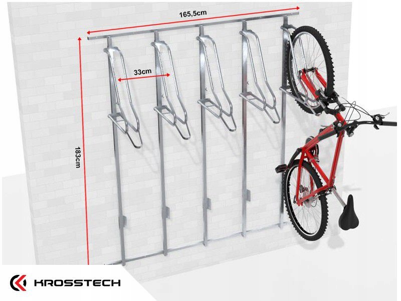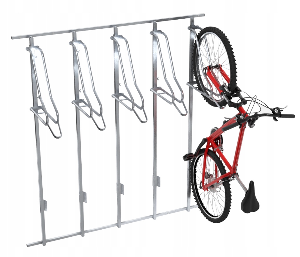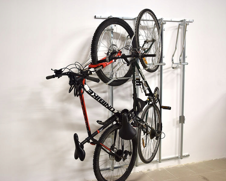 Wieszak na rowery lift-5 premium z płozami umożliwiającymi prosty i wygodny montaż na ścianie. Główną zaletą tej wersji wieszaka jest ograniczenie ilości punktów mocowań w ścianie przy zachowaniu odpowiedniej wytrzymałości nośnej wieszaka. Wieszak jest regulowany zarówno w pionie jak i poziomie - pozwala na dopasowanie ustawienia stanowisk pod własne preferencje. Wieszak dostępny jest również z koluchem (za dodatkową dopłatą) umożliwiającym zapinanie rowerów za ramię.