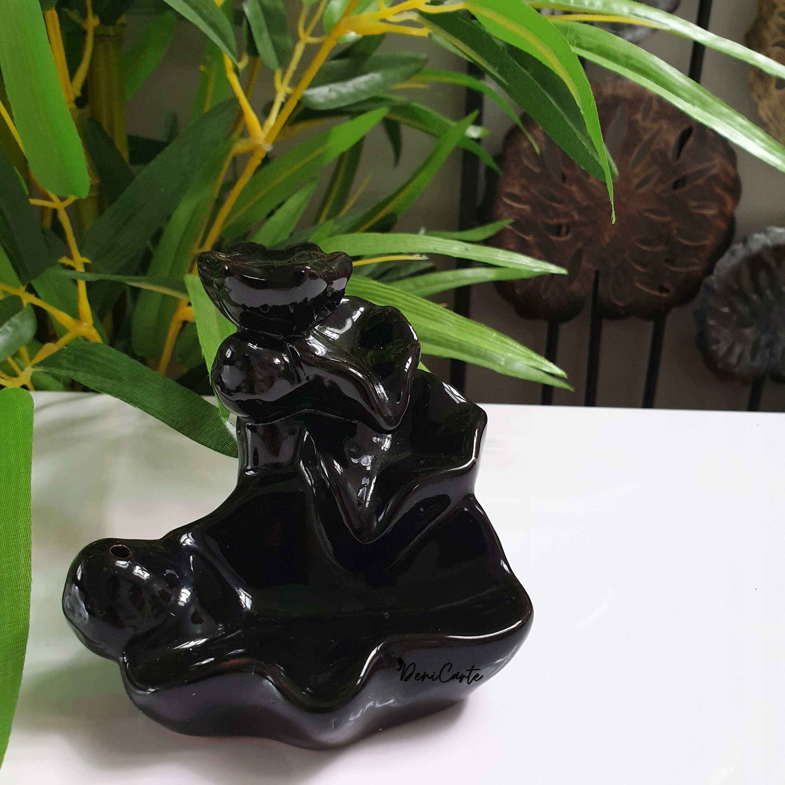 Kominki Zapachowe typu Backflow zostały specjalnie zaprojektowane tak, aby dym z kadzidełka spływał kaskadą w dół do pojemniczka na dole kominka. Dym z kadzidełka, który niczym mgła otacza kominek i spływa niczym mistyczna rzeka po wyżłobieniach oraz rowkach kominka.