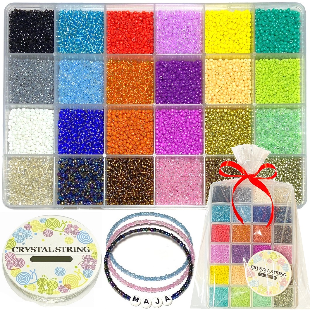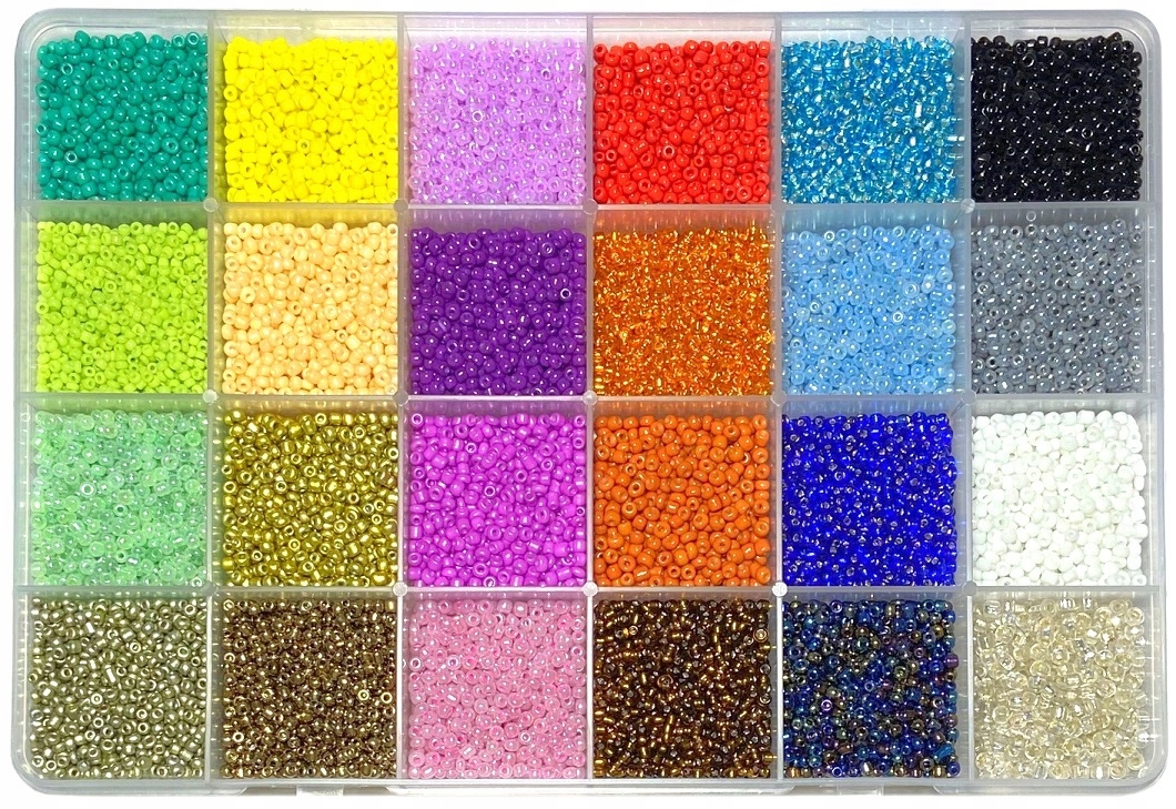 Koraliki szklane drobne seeds 2mm - 24 kolory po ok. 650sztuk w każdej przegródce