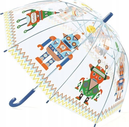 Wyjątkowa parasolka ozdobiona robotami. Doskonale chroni przed deszczem, a dzięki temu że jest przezroczysta pozwala dokładnie zobaczyć otoczenie. Parasolka ma bezpieczny system otwierania, chroniący palce przed skaleczeniem, a pręty zostały zakończone plastikowymi kulkami. Konstrukcja parasola jest lekka a przy tym wytrzymała, została wykonana z włókna szklanego.