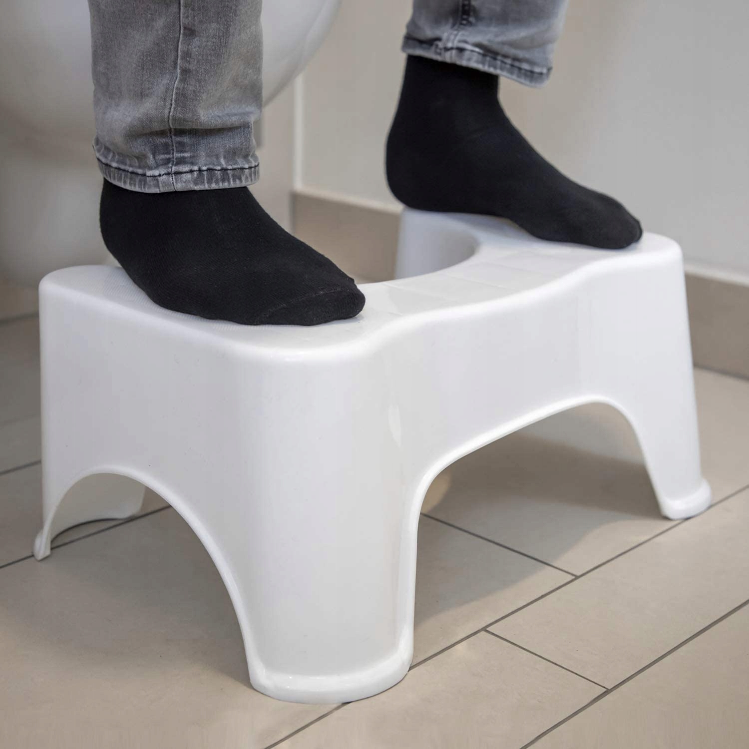 Tradycyjna pozycja siedząca powoduje zablokowanie jelita i utrudnia przepływ stolca. Udowodniono, że stołek toaletowy w kształcie litery U poprawia kondycję jelita grubego i łagodzi objawy hemoroidów, zaparć oraz wzdęć.